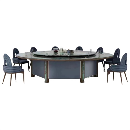 這款酒店豪華20人大理石電動(dòng)餐桌大圓桌是舉辦盛大宴會(huì )、會(huì )議或派對的理想選擇。這款餐桌采用天然大理石臺面,高雅、耐用、易于清潔。臺面由實(shí)木底座支撐,堅固穩定。餐桌還配有電動(dòng)旋轉托盤(pán),可以通過(guò)遙控器或開(kāi)關(guān)控制,方便高效地上菜。