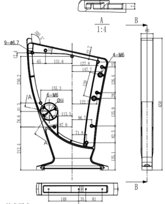 鋁合金站腳外觀(guān)及尺寸 :